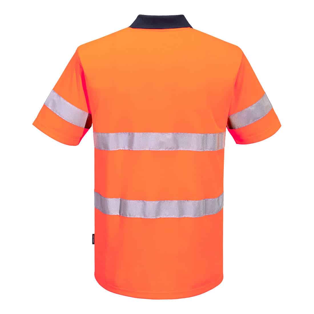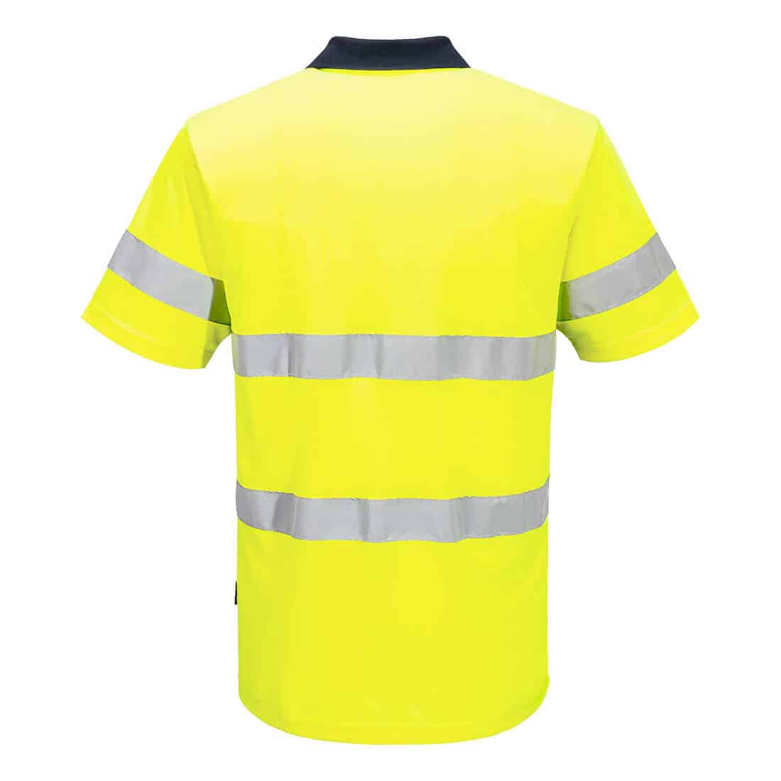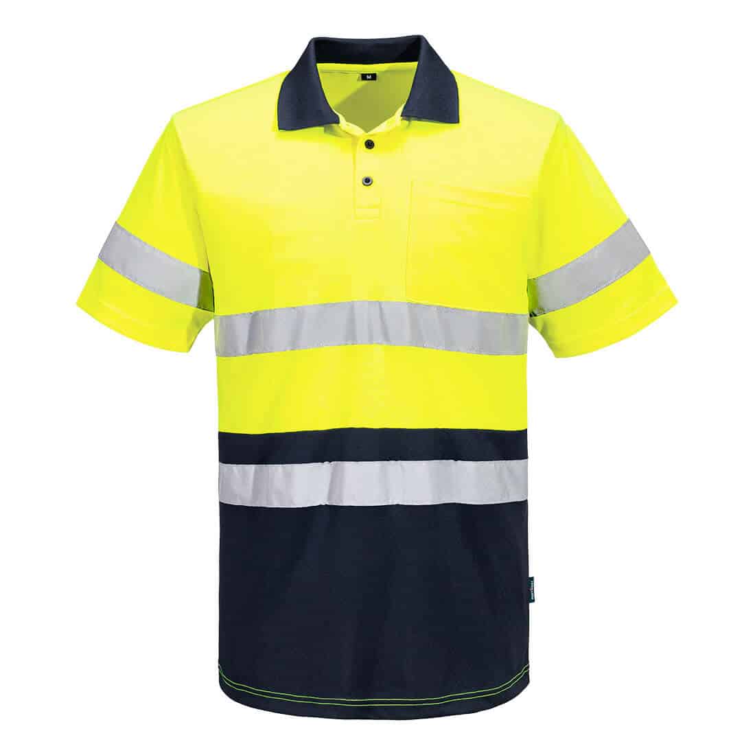 Hi-Vis Polyester short sleeve polo with 3 button closure and single breast pocket.
