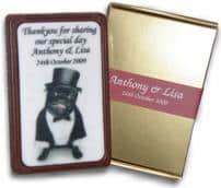 Our colour printed chocolates are individually printed which enables us to offer bespoke personalisation – such as individual names onto each bar. Gift boxes are available with most of our printed chocolates, and the medium & large sizes can also finished off with a 'belly band', which can also be personalised to your requirements
