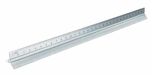 30cm aluminium ruler with 5 different scales (1:20, 1:25, 1:50, 1:75, 1:100) 1 plain section for branding. Boxed.