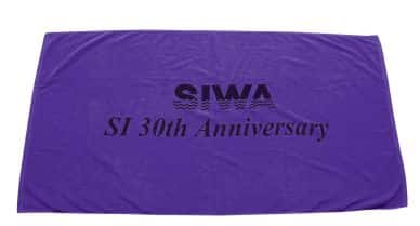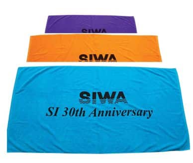 Signature Velour printed towels. Navy, Royal, Purple, Red, Aqua, Tangerine, Cyclamen and White can have a black print for outstanding branding on a beach towel.
