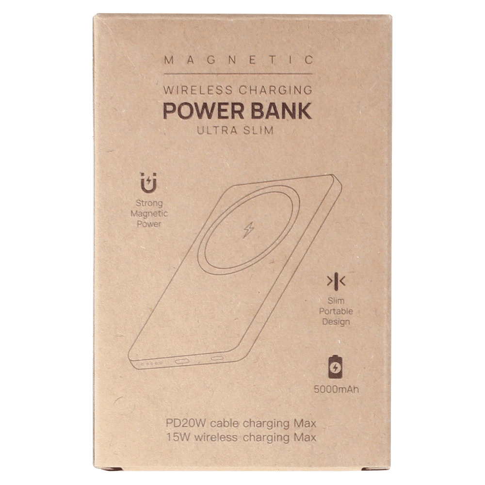 Experience sleek power on the go with the Slim Metal Magnetic Power Bank – 5000mAh, a compact and stylish charging solution designed for modern lifestyles. Crafted with a premium aluminium finish and ultra-slim profile, this power bank combines elegance with high-performance functionality. Enjoy 15W magnetic wireless charging for compatible phones, offering a secure and effortless connection. For even faster power-ups, the PD 20W fast charging via type c cable ensures your devices are ready when you are. The battery level indicator lights keep you informed of the battery level at a glance.