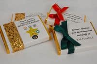 Small plain or custom bar in foil with premium paper wrappers and embellishments.