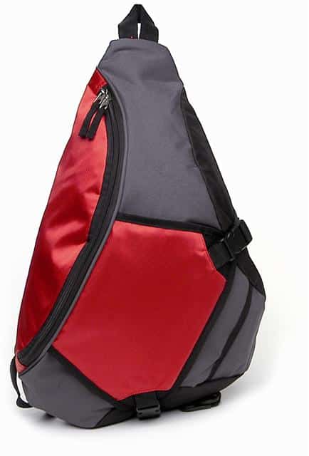 600D polyester/ripstop nylon Sling Pack contoured shape, shoulder strap with reflective piping, front flap with compression straps