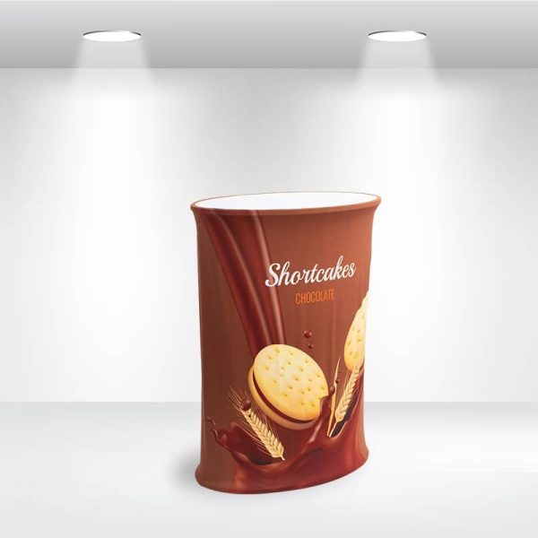 This innovative oval-shaped display counter is an amazing solution for your trade shows, conferences, conventions, and exhibition needs. Just as its name indicates, with the spring mechanism, it can be pulled up or retracted within seconds! With a flat top and fully customizable graphic, it can be used as a podium, a table, or a product display shelf.
