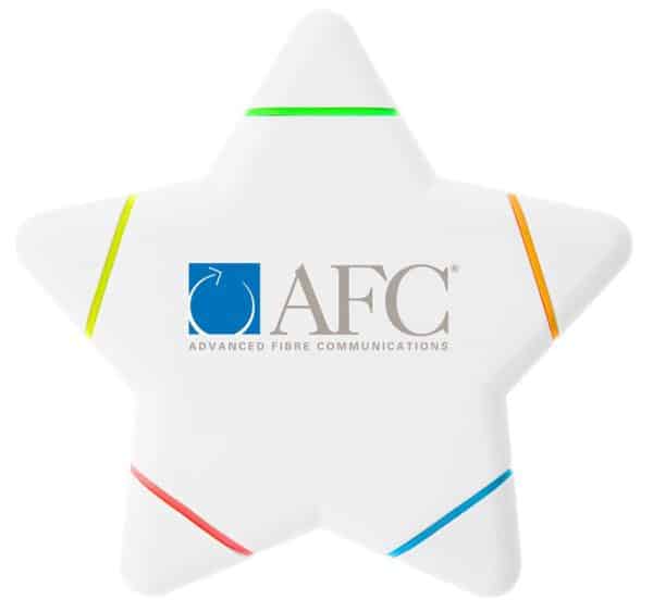 A highlighter set in the shape of a star. Each point has a different colour highlighter inside.