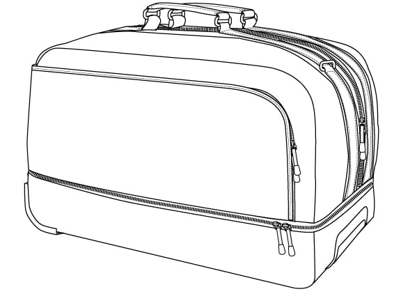 300D polyester/ballistic nylon trim Wheeled Duffle Bag with internal retractable trolley system, zippered base compartment and dual carry handles