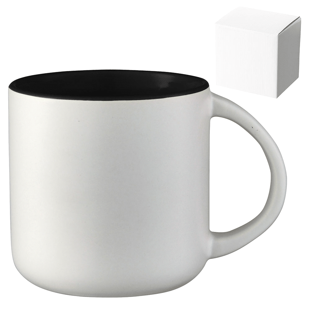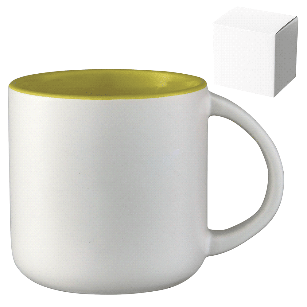 The Tango Ceramic Mug has a matte exterior finish and interior colour accent.