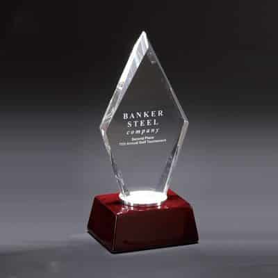 Crafted out of optically perfect crystal. Rests on top of a polished rosewood base.