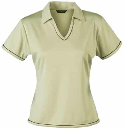 Made from 185g polyester Cool Dry, the Cool Dry Polo has a flattering fit and a very soft, silky finish. It features a fashionable self-fabric collar, contrast trims on the sleeves, edge of the placket and hem. The ladies style features a V-neck collar.