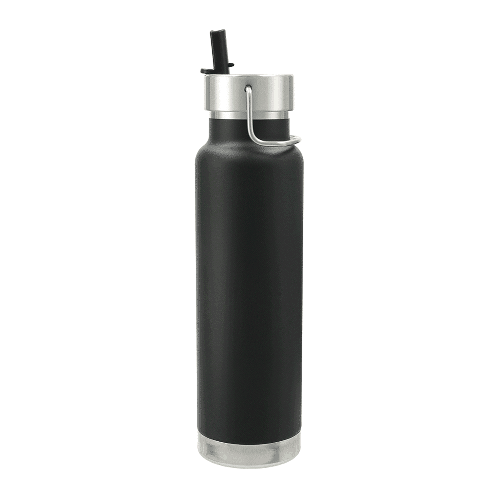 Durable, double-wall stainless steel vacuum construction with copper insulation, which allows your beverage to stay cold for up to 48 hours and hot for at least 12 hours. The construction also prevents condensation on the outside of the bottle. On-trend, durable powder coating. Stainless steel screw-on, spill resistant lid with integrated straw and durable stainless steel hand loop. Wide opening for comfortable filling and pouring. Perfect for ice cubes. Fits most standard car cup holders. 740ml. Note: Drinking hot beverages with the straw is not recommended. Remove lid to allow beverage to cool. Hand wash only.