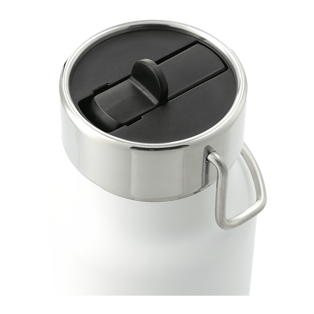 Durable, double-wall stainless steel vacuum construction with copper insulation, which allows your beverage to stay cold for up to 48 hours and hot for at least 12 hours. The construction also prevents condensation on the outside of the bottle. On-trend, durable powder coating. Stainless steel screw-on, spill resistant lid with integrated straw and durable stainless steel hand loop. Wide opening for comfortable filling and pouring. Perfect for ice cubes. Fits most standard car cup holders. 740ml. Note: Drinking hot beverages with the straw is not recommended. Remove lid to allow beverage to cool. Hand wash only.