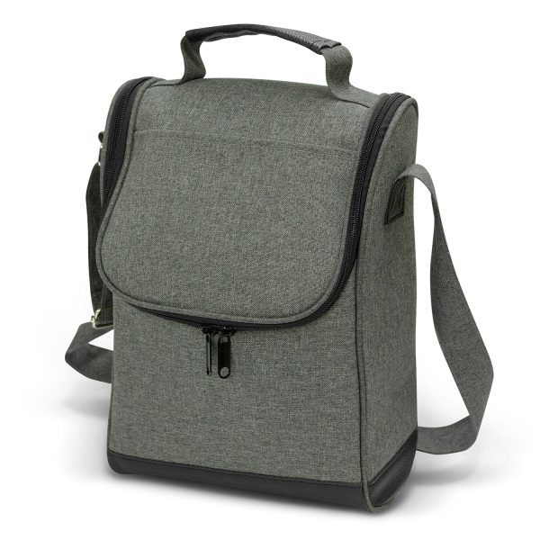 Exceptional two-person picnic set which is manufactured from strong 600D poly-canvas with a two-tone heather finish. The bag has a large zippered main compartment, a large front slip pocket, a carry handle with a PU cuff and an adjustable shoulder strap with silver metal buckles. The picnic set includes two acrylic glasses, two knives, forks and spoons, two plates and two elastic loops to secure a bottle of wine.