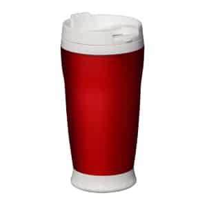 Colourful frosted finish exterior with double wall plastic interior, and flip top lid.