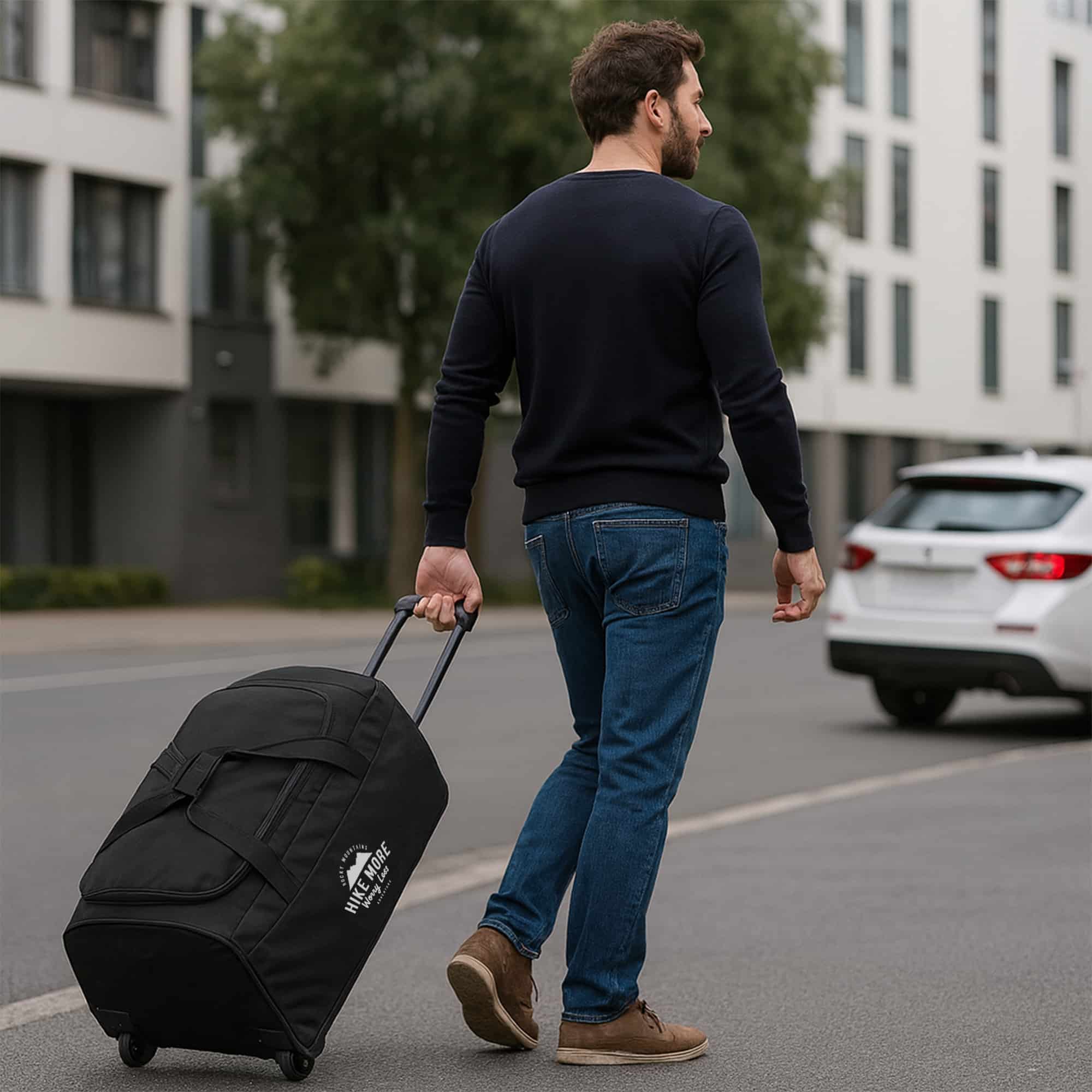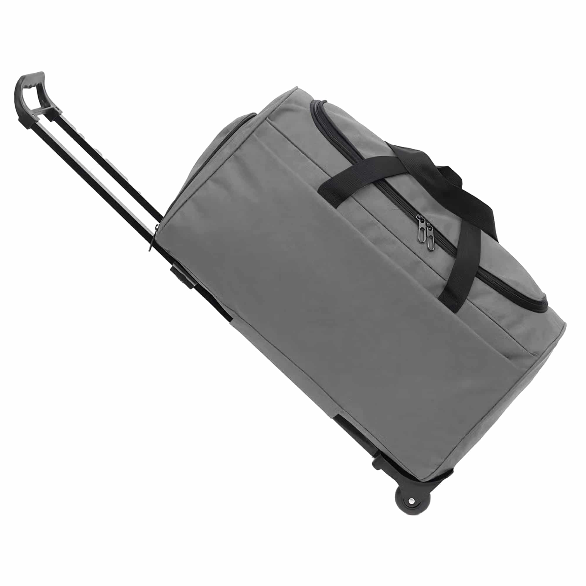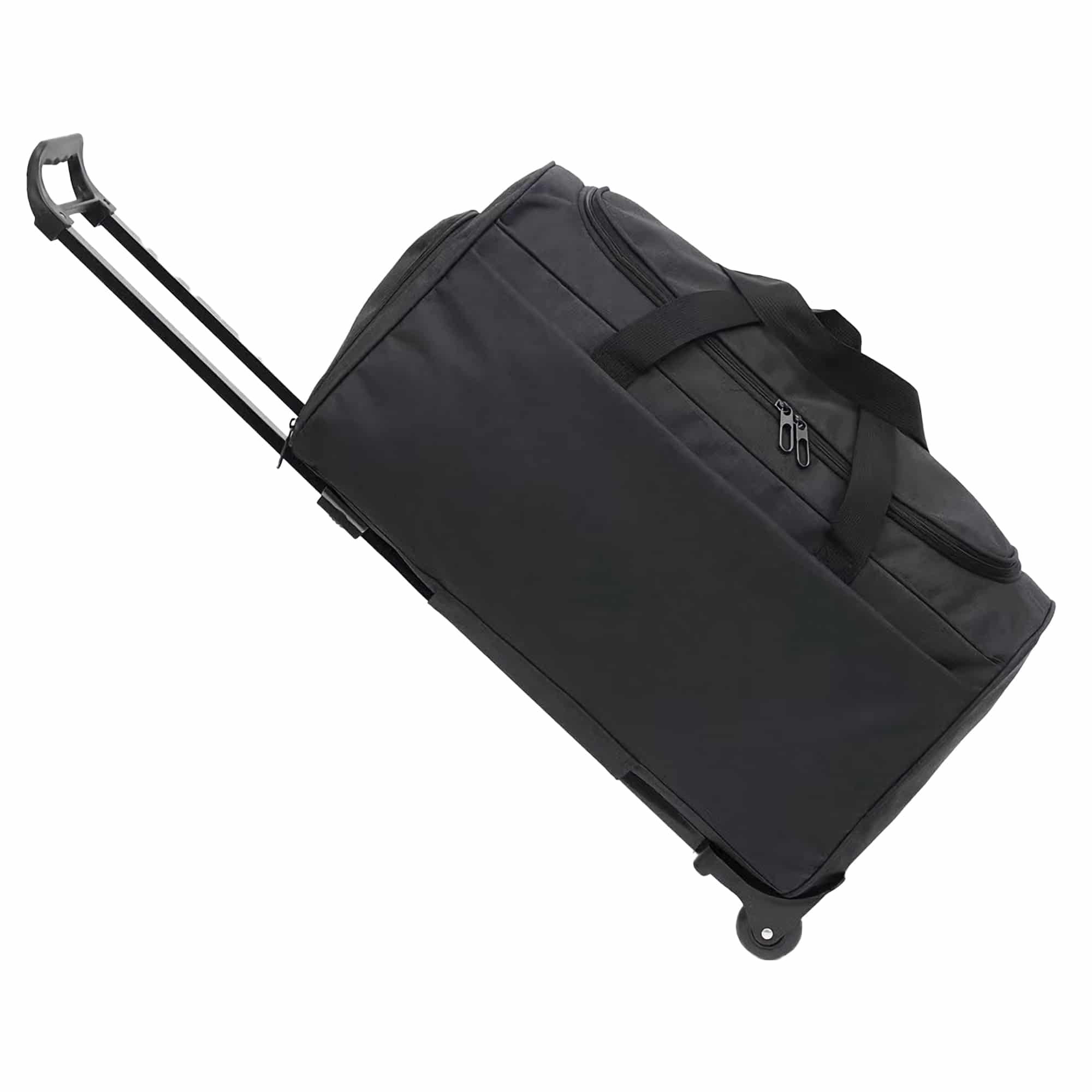 This Wheeled Duffel Bag can be conveniently folded up when not in use. Featuring a front zipper pocket for essentials, a side zipper pocket for shoes and a wheeled zipper pocket with large capacity which makes it a perfect travel companion. Our quality duffel bag is made of Oxford material, that is water resistant and durable. With screen print to showcase your design, you can choose from 5 colours.