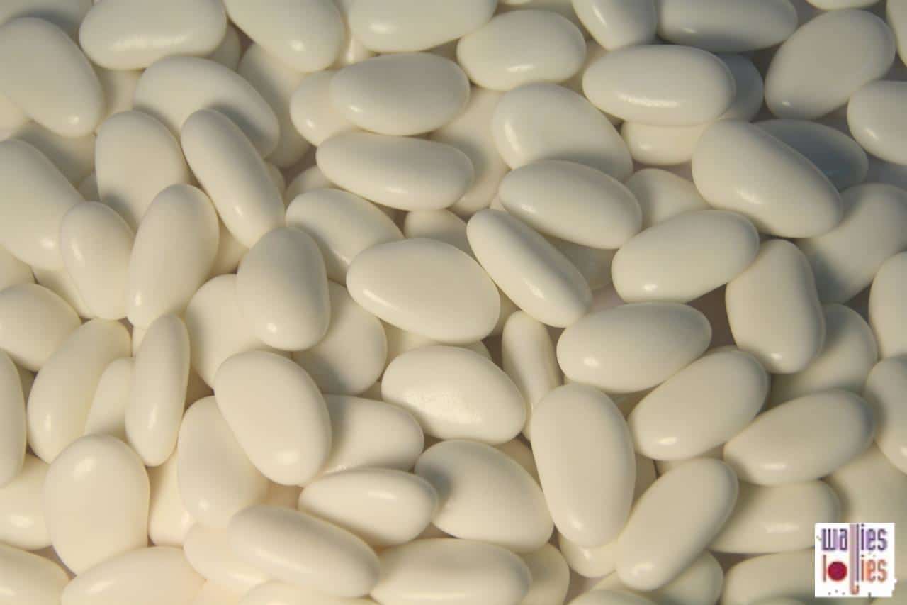 These stunning, delicious sugar coated almonds in an white sugar coating. These are premium quality, dry roasted almonds covered in a sugar coating. Sugar coated almonds are especially suitable treats to be used in bonbonniere for weddings, Christenings or any other occasion where you want to give your guest favors!