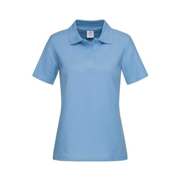 Soft single jersey polo shirt for women, with a pleasing piqué look, rib collar and 2 tone-on-tone buttons.