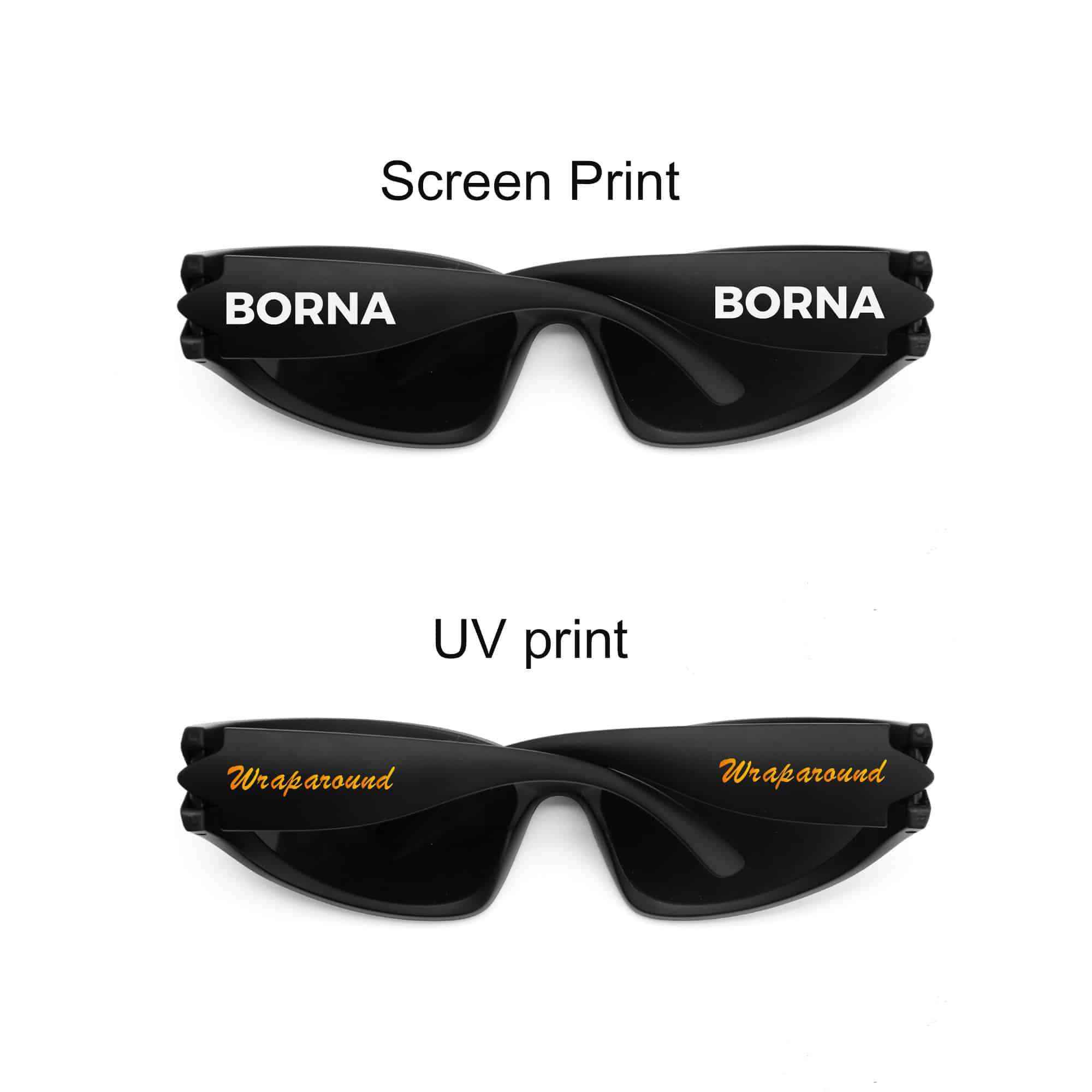 Get your branding seen with our new Wraparound Sunglasses! Made from PC material, these sunglasses offer premium UV protection while ensuring clear vision and comfort during your outdoor pursuits. With screen print on frame arms to highlight your branding. Perfect for outdoor activities or as branded giveaways.