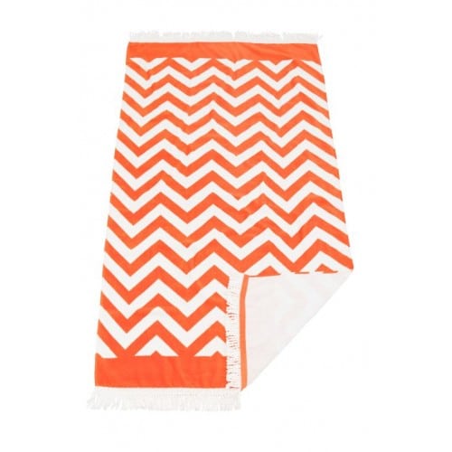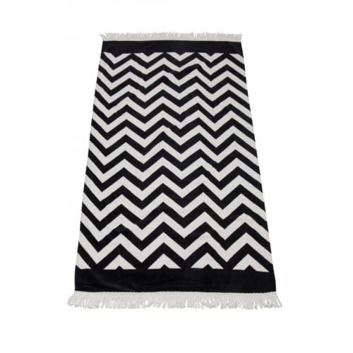 Large printed beach towel with fringe and zig zag print.