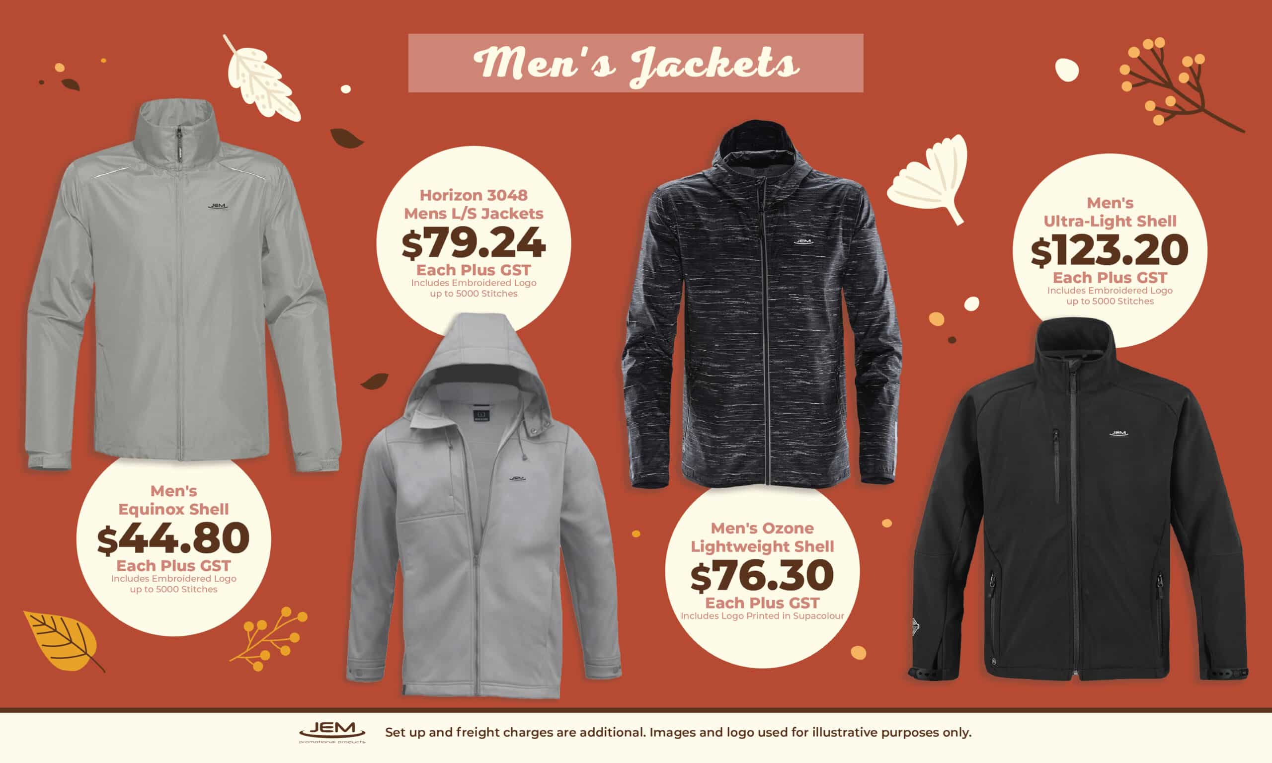 Please don’t hesitate to contact the team at JEM Promotional Products on (02)82051334 or enquiries@jempp.com.au for more information on any of the promotional items and uniforms in our range.