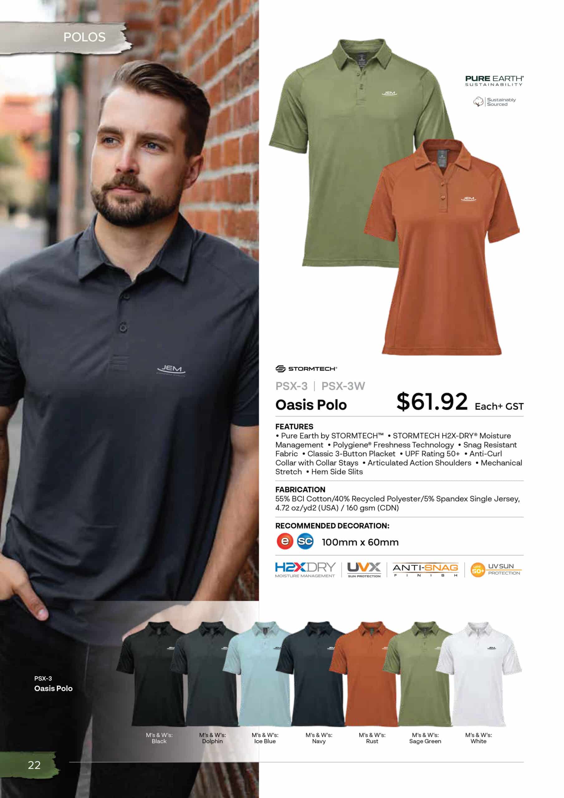 The Sustainable Eco Team Apparel Catalogue consists of garments and headwear that are considered a better alternative to the usual uniform options and much easier on the Earth. Our team recommends browsing the following categories for specific requirements and to create a uniform that fits perfectly with your Brand. Atlantis for the latest in headwear, Stormtech for maximum weather protection and garment styling, James Harvest or Harvest & Frost for timeless elegance in apparel. Take a moment to review the Stormtech Polo & Short Sleeve Shirts range below and select key items to add to a team uniform. Please select from some of our popular items, such as the Men’s Ferrera Polo, the Women’s Ferrera Polo, the Men’s Molokai Short Sleeve Shirt, the Women’s Molokai Short Sleeve Shirt, the Women’s Skeena Short Sleeve Shirt, the Men’s Skeena Short Sleeve Shirt, and the Men’s Settebello Polo.